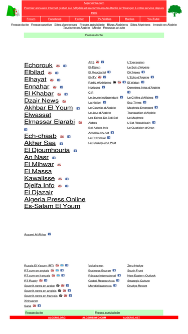 Algerieinfo. Pre-1962 Algeria has seen many empires and dynasties including ancient Numidians Phoenicians. La presse algérienne en français. Page Facebook officielle d ALGERIEINFOCOM premier annuaire Internet gratuit sur lAlgérie et sa communauté établie à létranger à votre service depuis 1997.